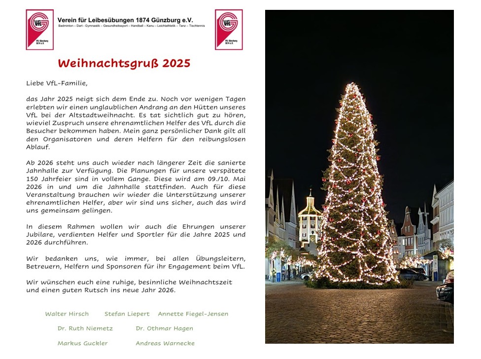In der Zeit vom 22. Dezember 2025 bis einschließlich 07.01.2026 bleibt unsere Geschäftsstelle geschlossen.